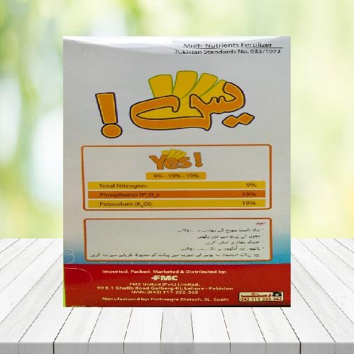 the yes npk 9%-19%-19% phosphorus 19% – potassium 19% 50gm is a product of fmc. the category is pesticides and subcategory is micronutrients